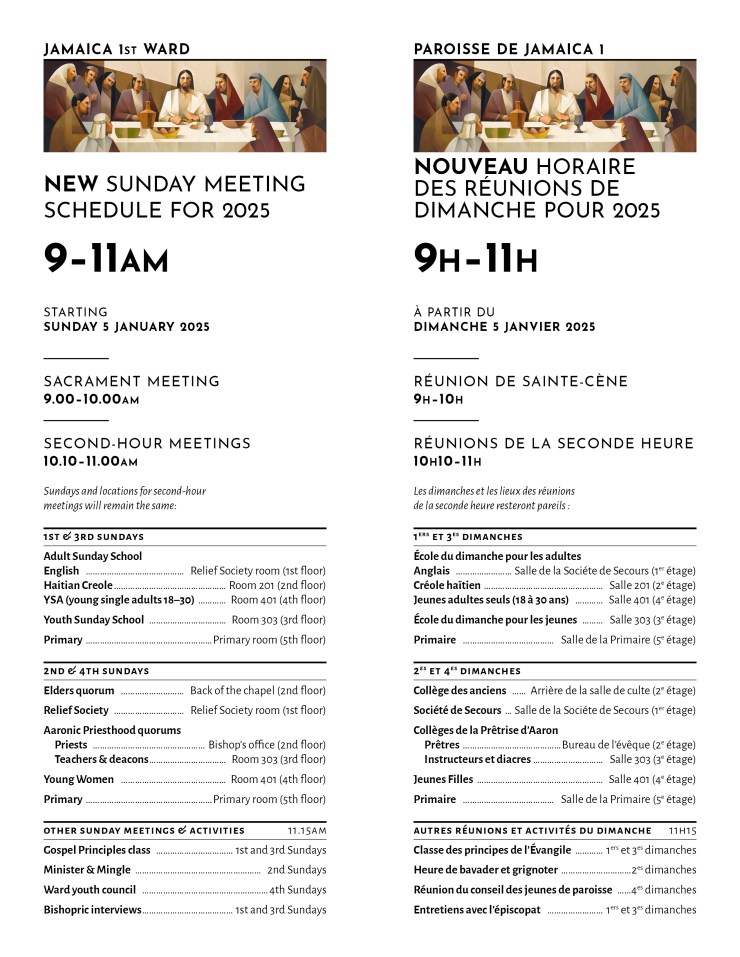 | YSA (young single adults 18โ30) | Room 401 (4th floor) |