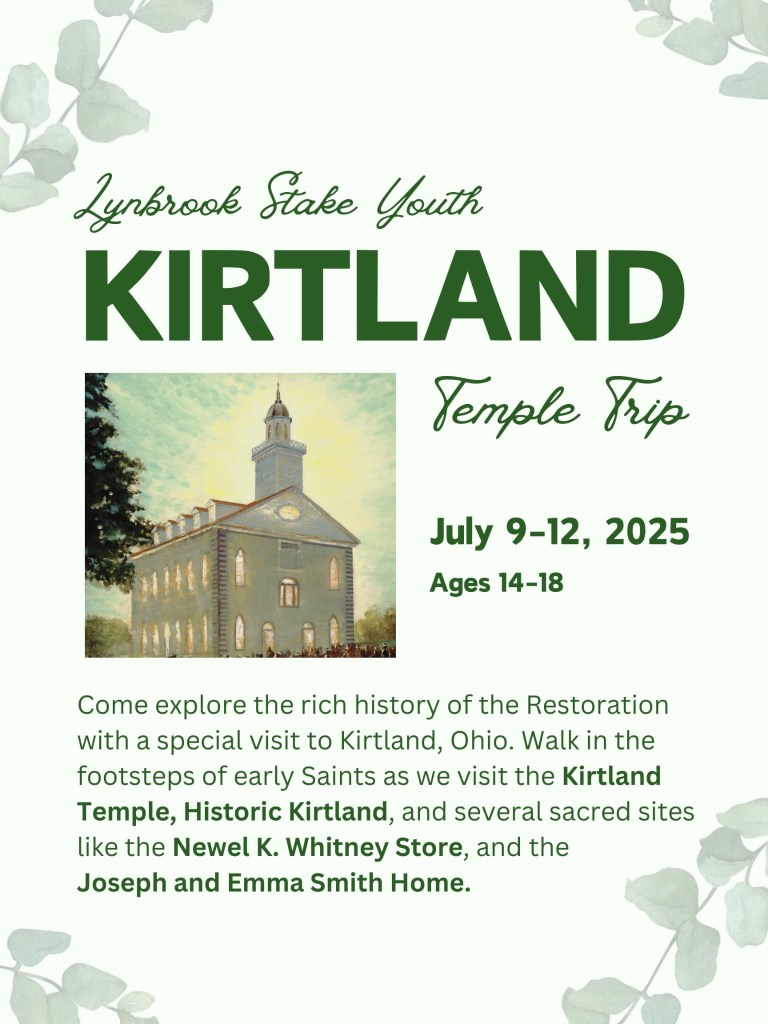 The Lynbrook New York Stake is organizing a trip for youth ages 14 and older to Kirtland, Ohio, where the church’s first temple was completed in 1836 and other significant events in early church history took place.